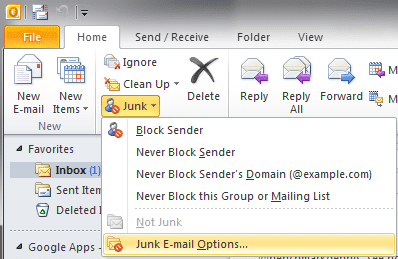 - Click Add Sender to Safe Senders List. You can also click Add the Domain @domain.com to Safe Senders List to whitelist all emails coming from any email address on that domain.